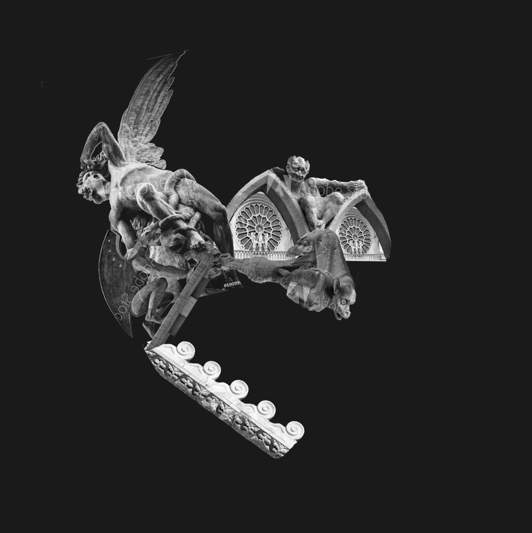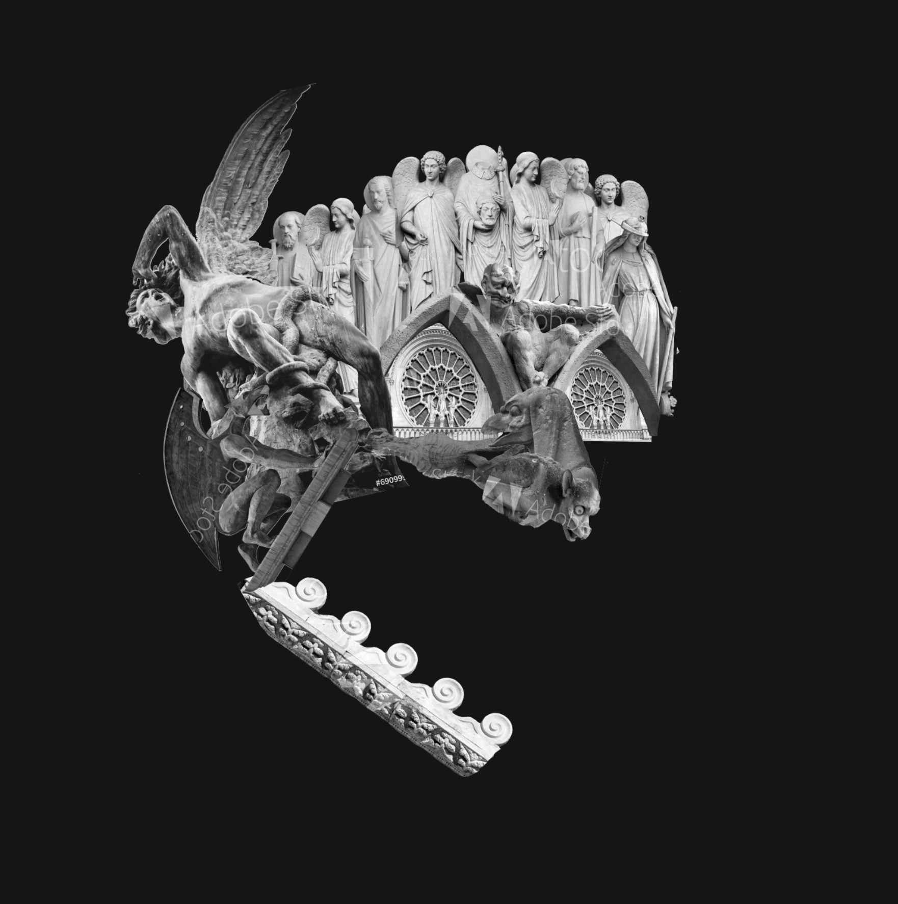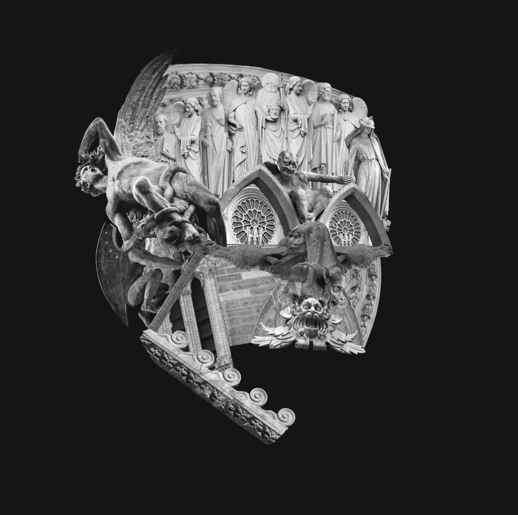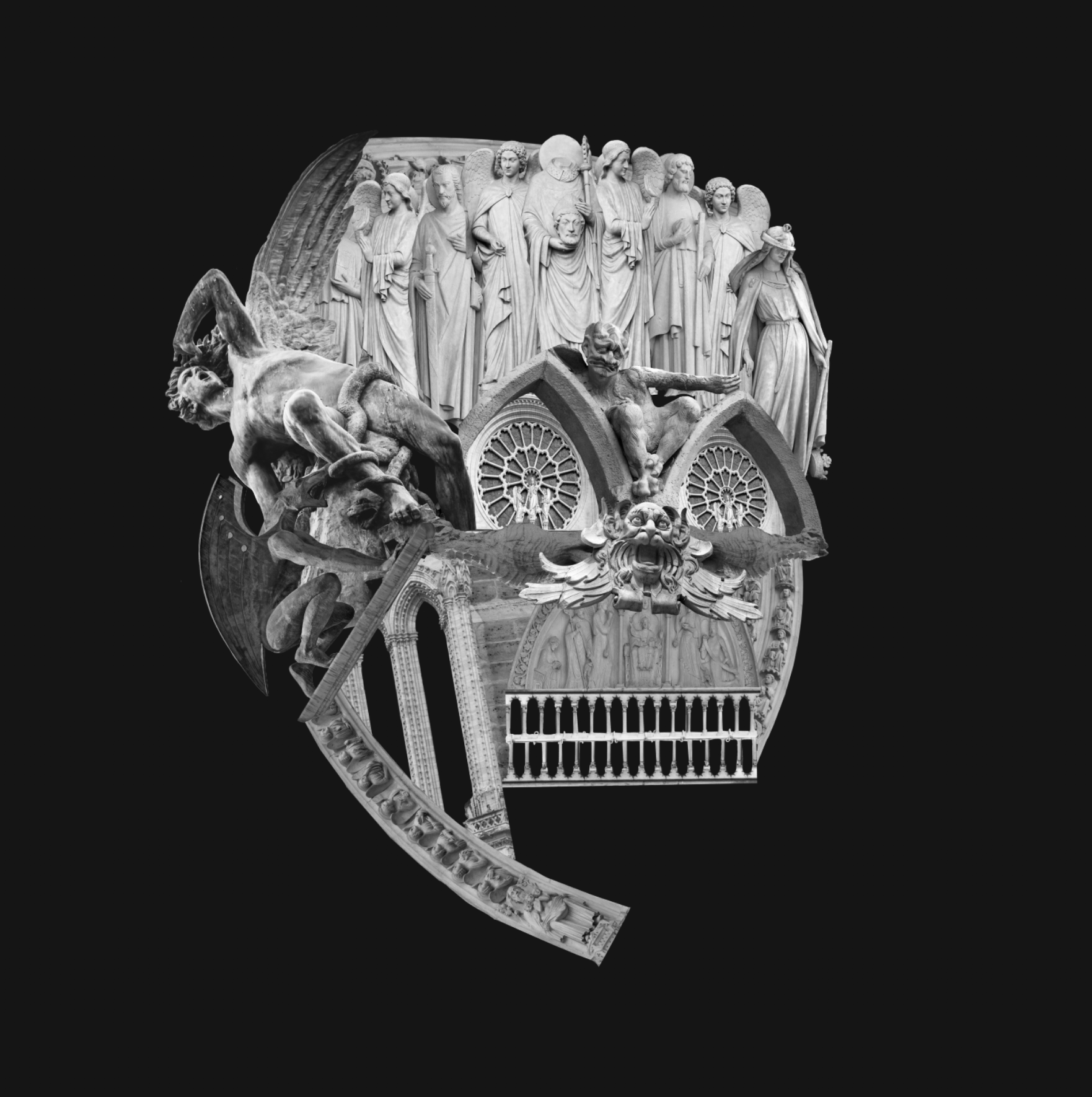 Twisted gargoyles and angelic statues of saints build the image of the human skull, echoing the lyric's question of humanity and morality. The skull is comprised entirely of Gothic architecture, taking most of its pieces from the Notre Dame Cathedral.